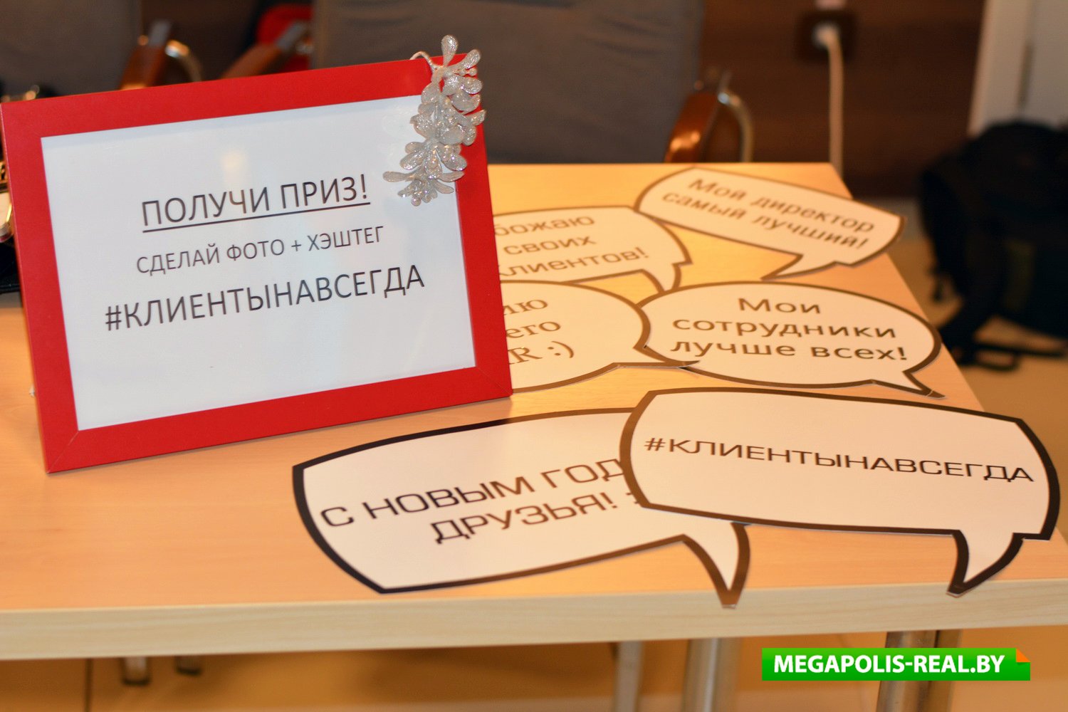 В преддверии Нового года организаторы приготовили ряд сюрпризов для участников мероприятия. У входа всех встречал Дед Мороз с подарками. Затем Снегурочки провожали гостей к столику регистрации и проводили небольшую экскурсию по этажу.