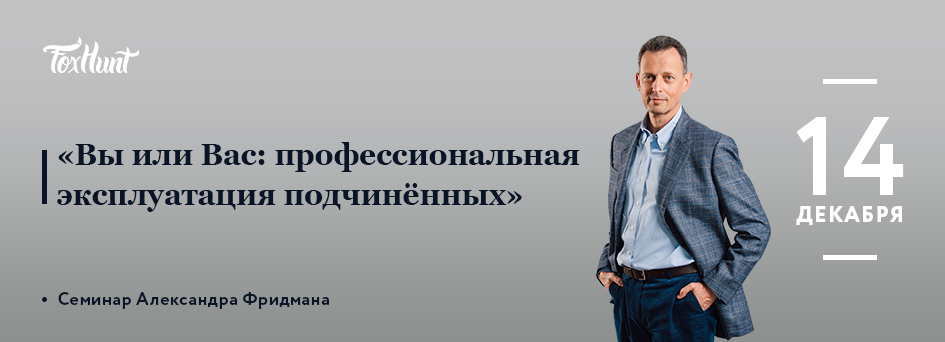 Семинар А. Фридмана «Вы или Вас: профессиональная эксплуатация подчиненных" 14.12.2019
