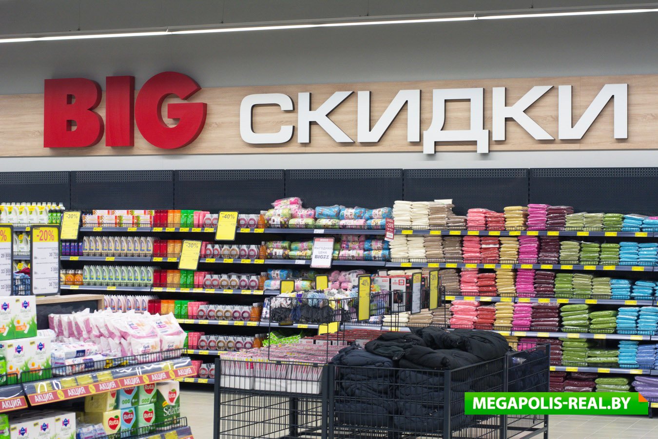 Супермаркет поддерживает концепцию аутлет-центра, например, здесь создан уникальный в своём роде отдел «BIGскидки», который предлагает покупателям расширенное предложение товаров со скидками.