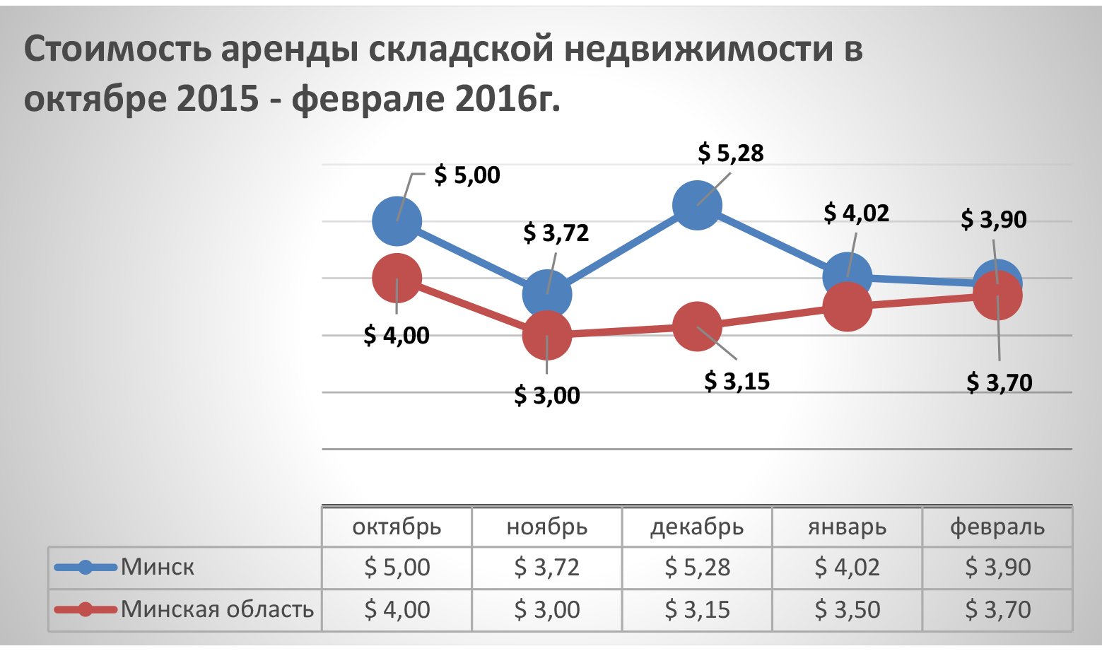 - По Минску и району средняя стоимость квадратного метра складской недвижимости зафиксирована на отметке 3,9 $ (в январе – 4,01 $).