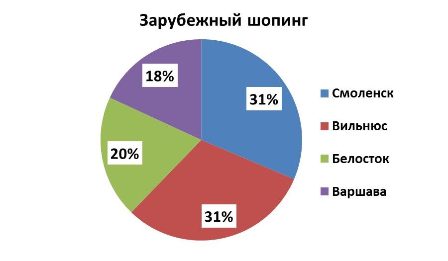 Если говорить о зарубежном шопинге, то предпочтения белорусов остались неизменными. Всё такой же популярностью пользуются торговые центры Смоленска, Вильнюса, Белостока и Варшавы. Общее количество запросов составляет почти 1 500. С чем это связано? Разумеется, с весьма ощутимыми скидками, особенно в преддверии новогодних и рождественских праздников, а также грандиозностью заграничных торгово-развлекательных центров.