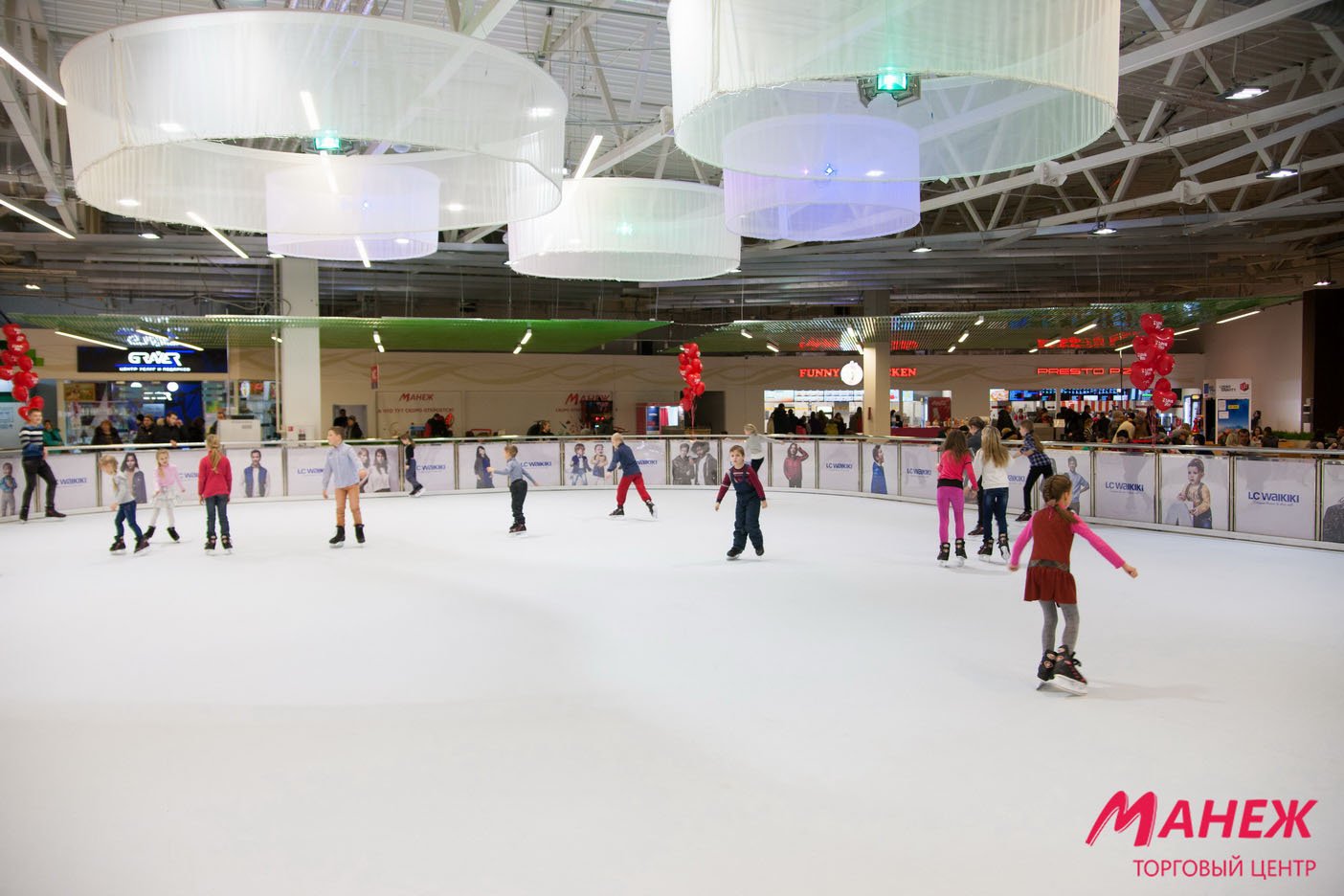 – Выбирая название, мы в большей степени отталкивались от концепции торгового центра. У нас есть каток с искусственным покрытием, можно сказать, единственный своего рода в Беларуси. И само слово «манеж» подразумевает под собой место круглой или овальной формы, где происходит некое впечатляющее действо. Отсюда и название «Манеж».